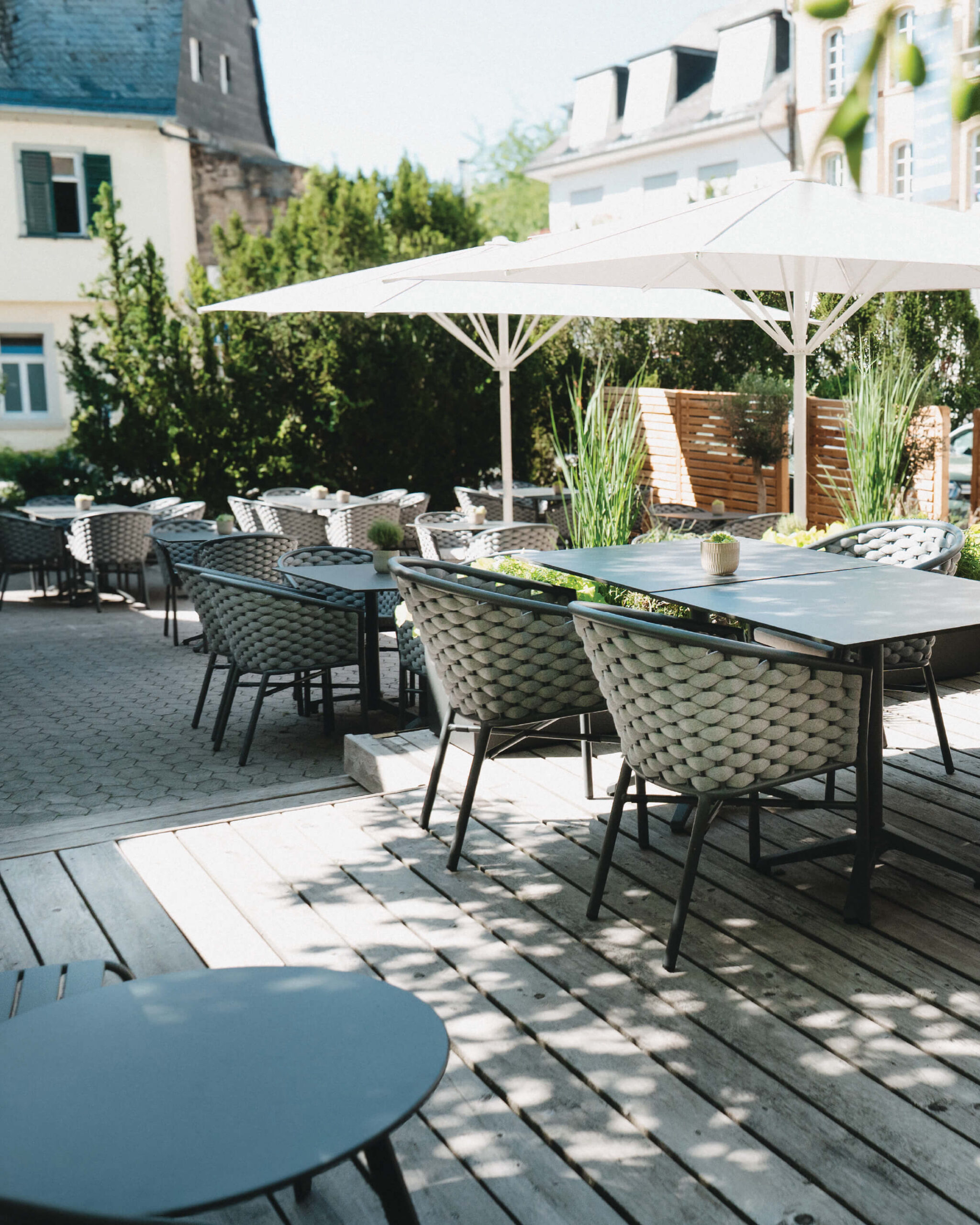 Unser geschützter Innenhof ist der perfekte Ort für eine kleine Auszeit. Ob Kaffee am Nachmittag oder ein Glas Wein am Abend – hier genießen Sie Ruhe mitten in Bad Kreuznach.