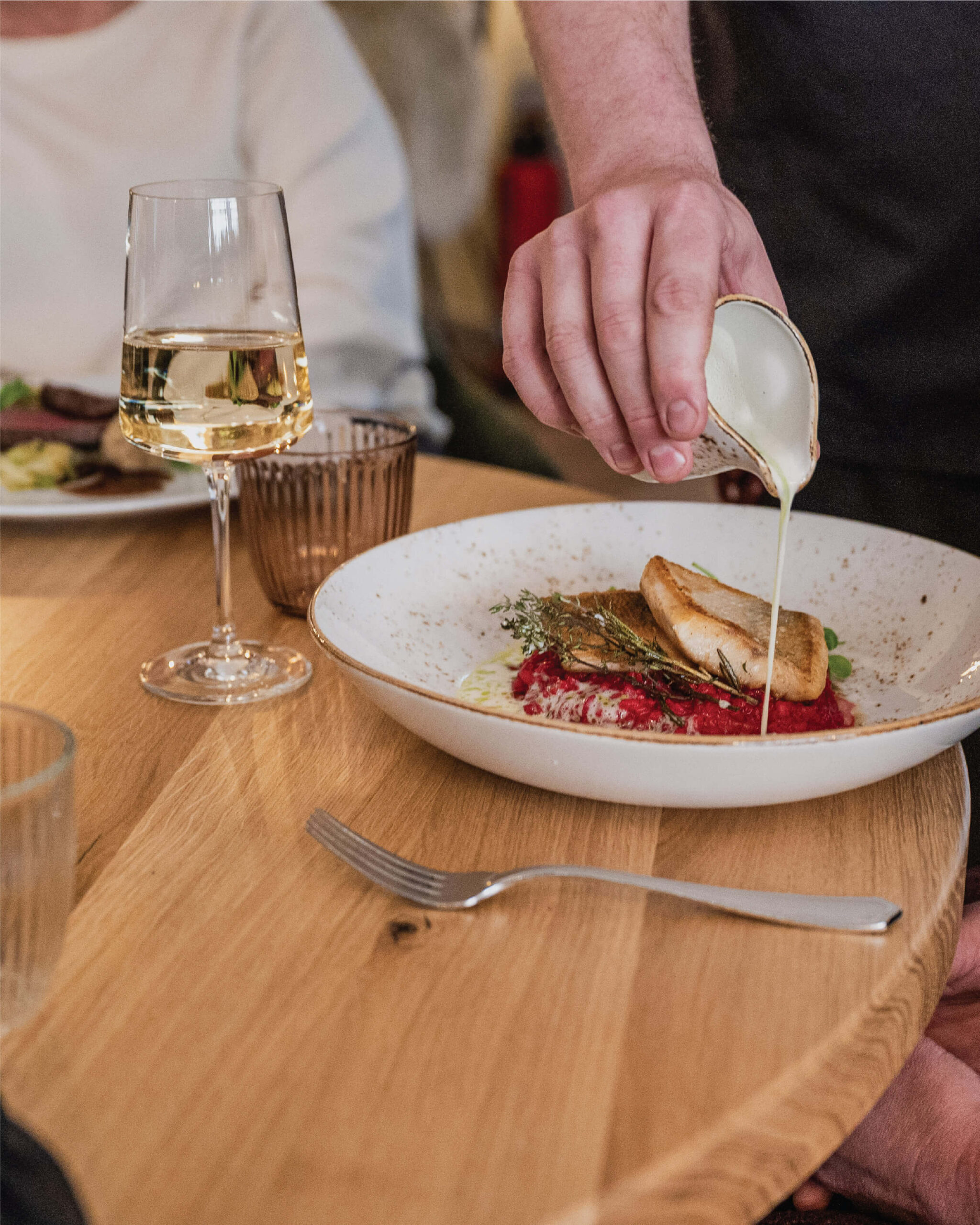 Küche bedeutet für uns mehr als Zubereitung. Sie ist ein Ort, an dem Heimat, Handwerk und Kreativität zusammenkommen. Wir arbeiten mit dem, was die Region uns schenkt, und verwandeln ausgewählte Zutaten in Gerichte, die vertraut schmecken und gleichzeitig Raum für Neues lassen.
